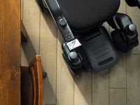 Access armrests and a footrest that fold upward, simplifying the process of getting in and out.